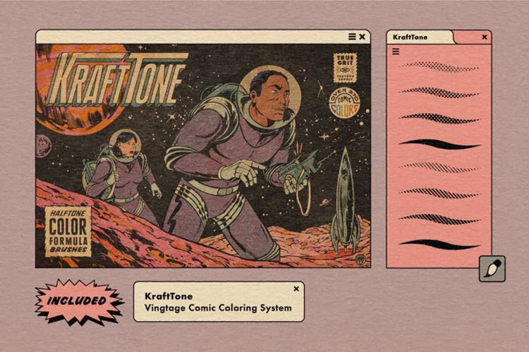 图穷联素材库 » 80年代复古风格漫画墨水半色调丝网印刷笔刷合辑 Clip S