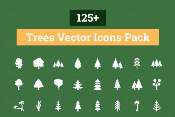 图穷联素材库 » 圣诞节树木图标素材 125 Trees Vector Icons Pack