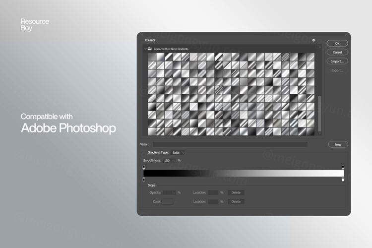 接触如此惊人的Photoshop 渐变效果,甚至不收取费用,这可不是每天都有的机会。您和有史以来最好的银色渐变系列之间的唯一距离就是一个简单的下载按钮。推开它,让有趣的部分现在开始吧!访问我们的图书馆以获取更多无价的图形资产。