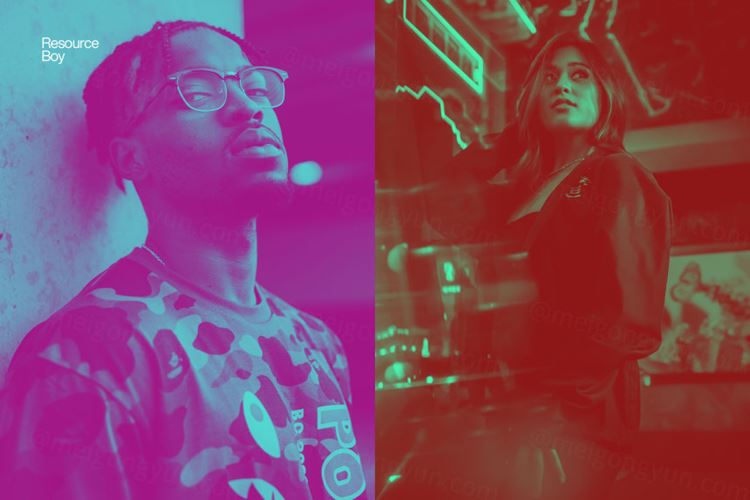200款复古酸性艺术双色调PS渐变素材 Duotone Ph