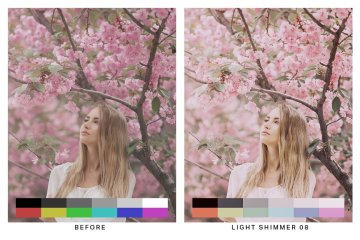 Light Shimmer (10 个预设)- 使用这些 Lightroom 预设来实现轻盈和喜怒无常的外观。这些预设赋予樱花美丽的浅粉色外观。