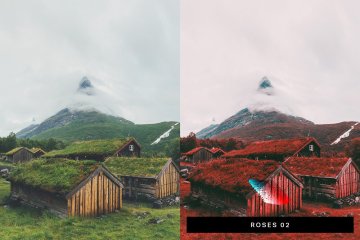 玫瑰 (10 个预设)- 明亮的红色和蓝色。与 Aerochrome 类似,但强度更高且没有黄色。