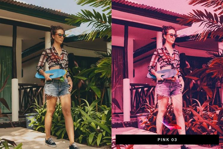 粉红色 (10 个预设)- 带有粉红色调的数字红外外观。