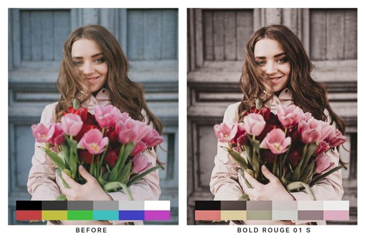 Bold Rouge (10 个预设)- 使用这些预设突出您的照片,为您提供大胆的唇膏红色和温暖的棕褐色调。