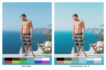 Santorini (10 个预设)- 寻找比橙色和蓝绿色更自然的东西?试试这些橙色和天蓝色预设。旅行摄影的理想选择。