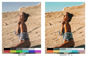沙漠 (10 个预设)- 明亮而充满活力的橙色和蓝绿色 Lightroom 预设,非常适合您的旅行照片。