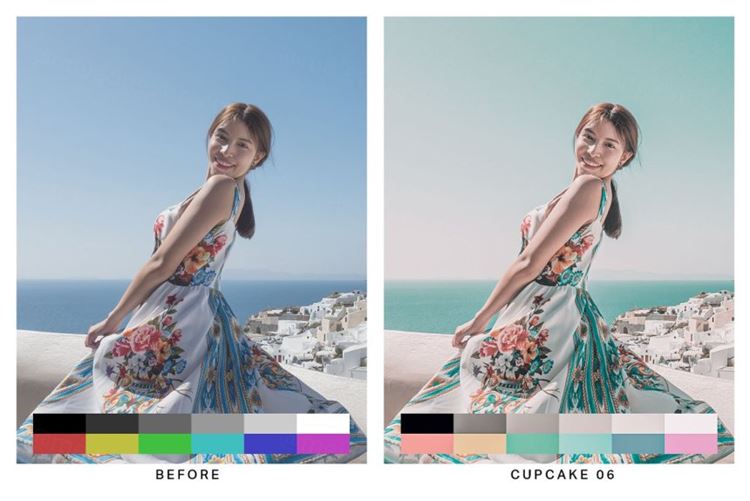 纸杯蛋糕 (10 个预设)- 带有玫瑰粉色和蓝绿色的柔和色彩让您的照片看起来梦幻。