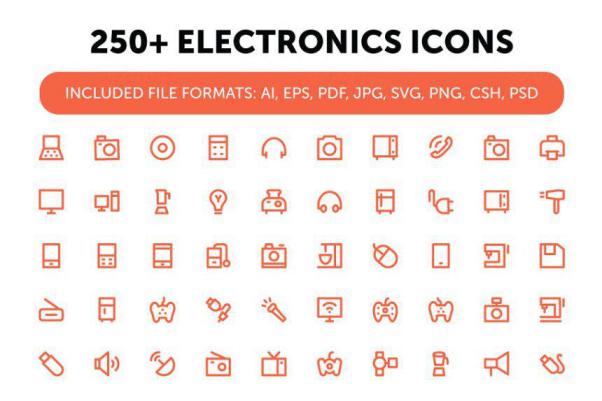 图穷联素材库 » 电子设备矢量图标素材 250 Electronics Icons