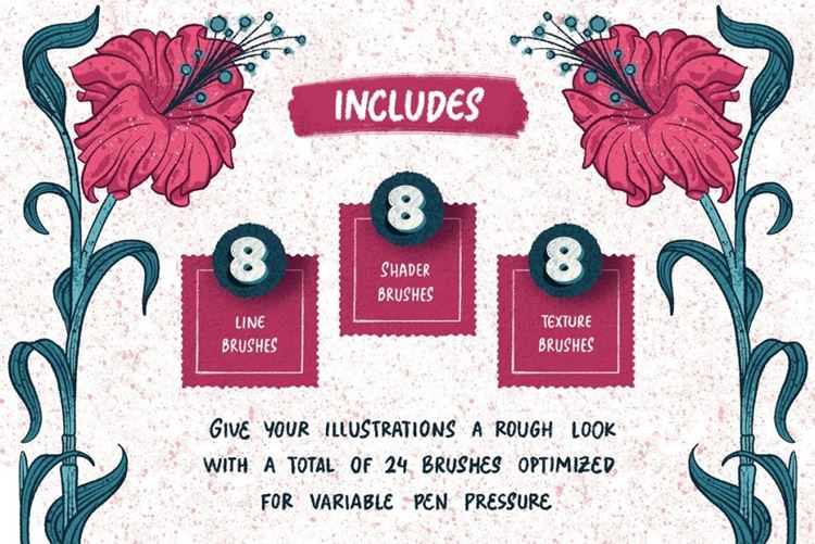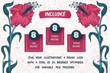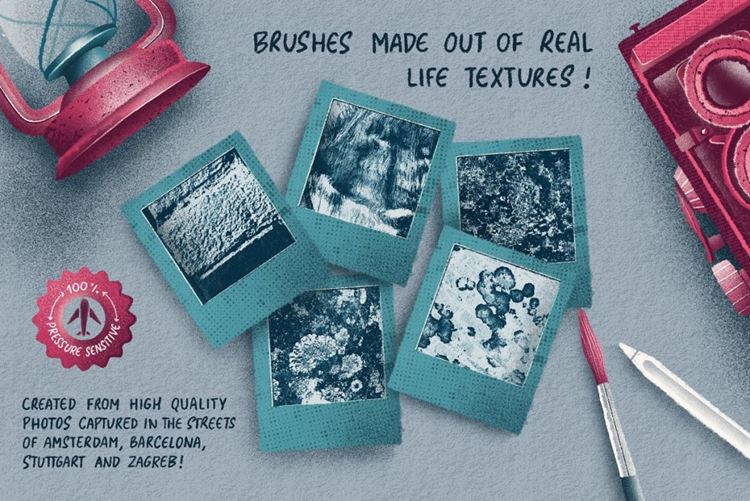 这款刷子套装将是您绝对的伴侣——您所有创意工作的 TO-GO 套装!这些画笔是我们旅行期间拍摄的数千张照片的结果。它们旨在为您的插图和刻字作品提供逼真的凹凸触感。