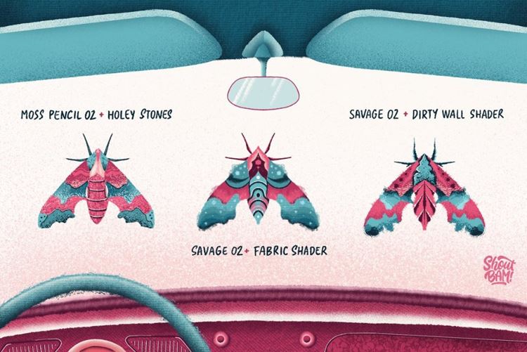 高质量颗粒压敏触感旅行风景插画ipad笔刷素材 On The