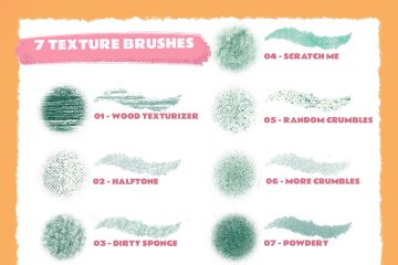 这些刷子将帮助您为您的作品赋予独特的手工触感和粗糙的边缘。它们非常适合创作各种插图,尤其是文字作品。所有这些都是从现实生活中的纹理创建的,为您的艺术提供了手工触感。