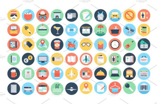 图穷联素材库 » 125 酒店服务图标素材 125 Flat Hotel Services Ic