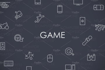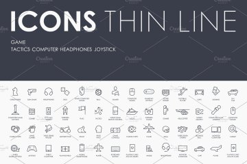 图穷联素材库 » 游戏矢量图标大全 Game thinline icons