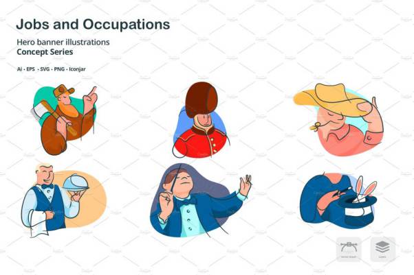 图穷联素材库 » 职业涂鸦线条图标素材 Occupations Doodle Line Icons