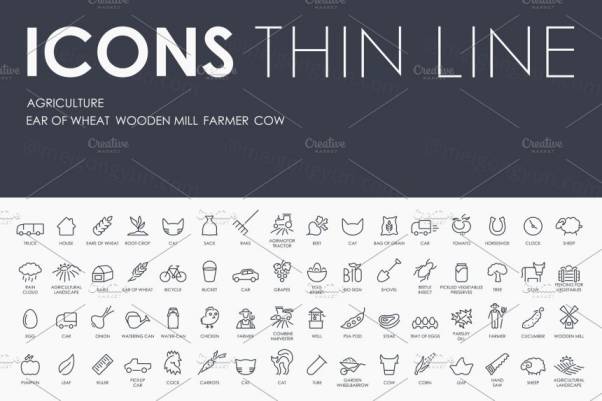 图穷联素材库 » 农业矢量图标下载 Agriculture thinline icons