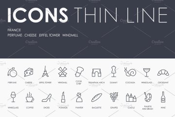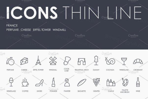 图穷联素材库 » 法国元素矢量图标素材 France thinline icons