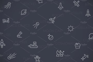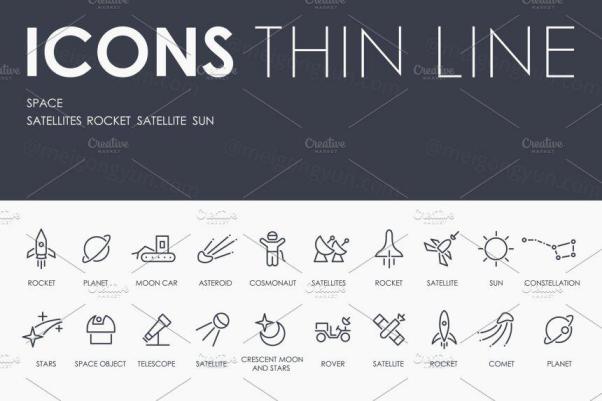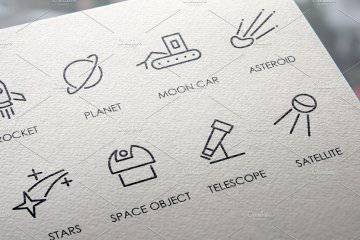 图穷联素材库 » 宇航太空logo制作 Space thinline icons