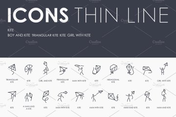 图穷联素材库 » 中国风筝元素图标大全 Kite thinline icons