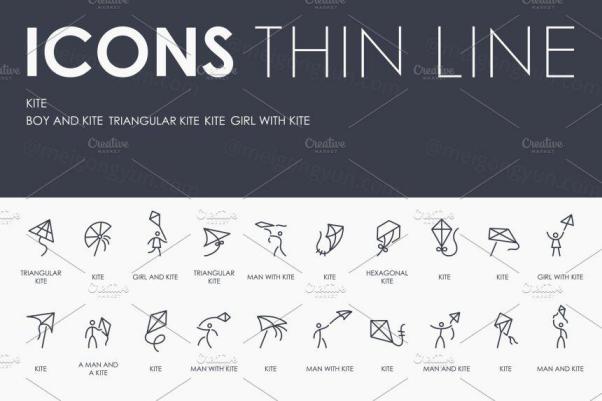 中国风筝元素图标大全 Kite thinline icons