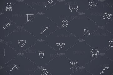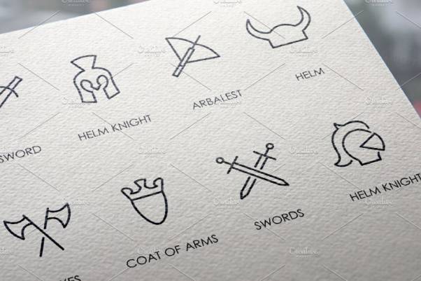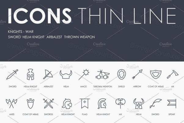 图穷联素材库 » 骑士游戏矢量图标素材 Knights thinline icons