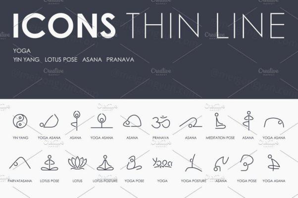 图穷联素材库 » 瑜伽图标素材 Yoga thinline icons
