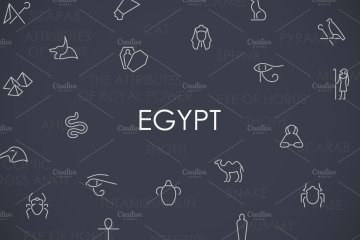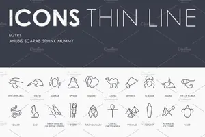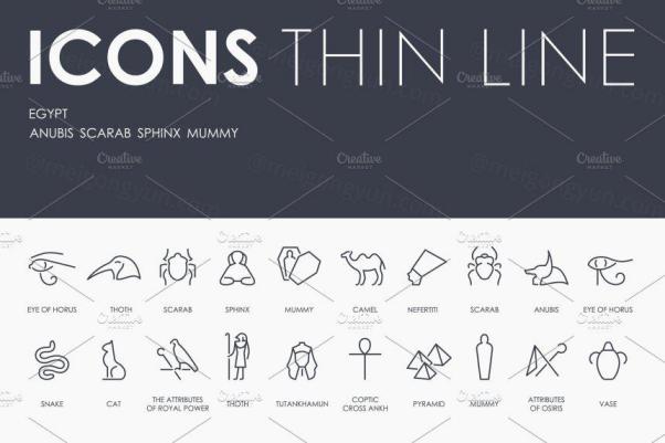 图穷联素材库 » 埃及元素矢量图标素材 Egypt thinline icons