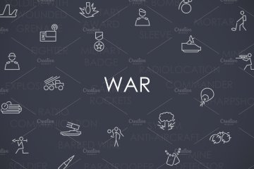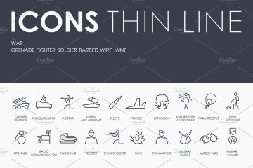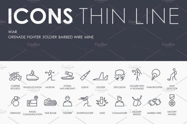 战争元素矢量图标素材 War thinline icons