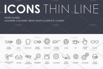 图穷联素材库 » 人工智能眼镜矢量图标素材 Smart glasses thinline icon