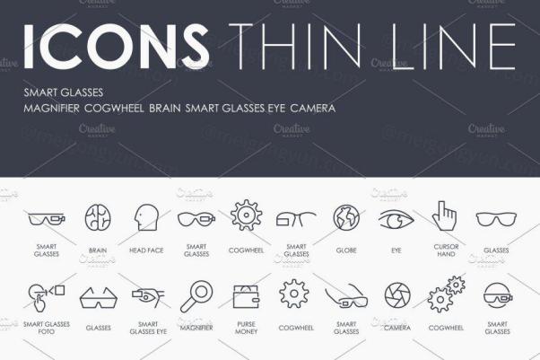 人工智能眼镜矢量图标素材 Smart glasses thinline icon