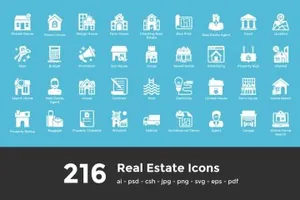 图穷联素材库 » 216个房地产字形图标素材 216 Real Estate Glyph Icon