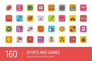 160个体育和游戏图标素材 160 Sports and Games Icons