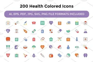 图穷联素材库 » 200个健康彩色图标素材 200 Health Colored Icons