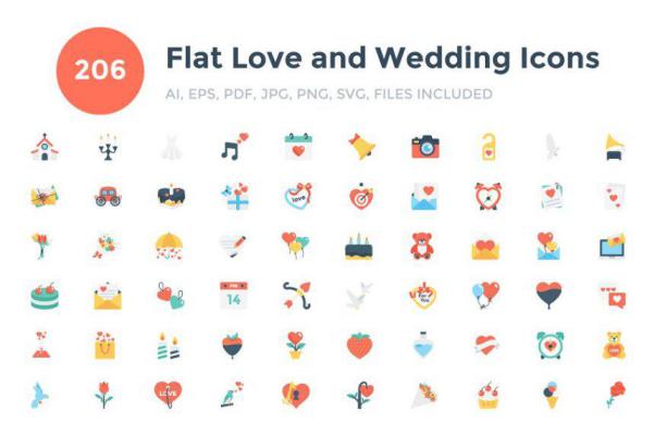扁平化爱情和婚礼图标下载Flat Love and Wedding Icons