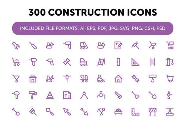 图穷联素材库 » 300个建筑图标大全 300 Construction Icons Set