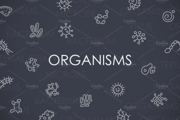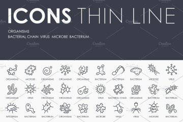 生物细菌矢量图标素材 Organisms thinline icons