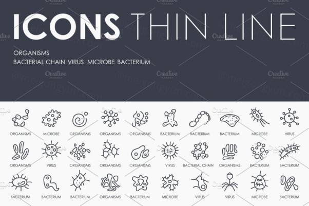 图穷联素材库 » 生物细菌矢量图标素材 Organisms thinline icons