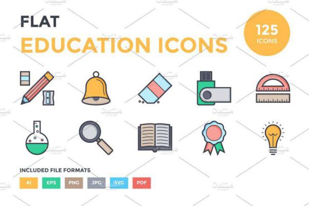 扁平化教育图标大全 125 Flat Education Icons