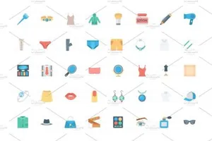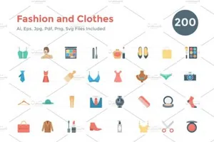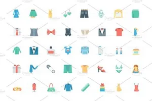 扁平化时尚服装图标素材 Flat Fashion and Clothes Ico