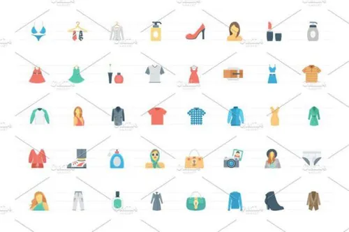 图穷联素材库 » 扁平化时尚服装图标素材 Flat Fashion and Clothes Ico