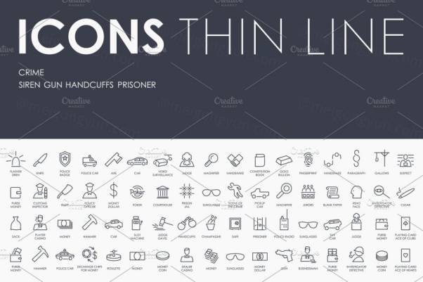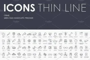 图穷联素材库 » 警察矢量图标大全 Crime thinline icons
