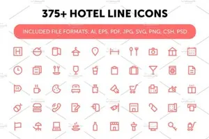 图穷联素材库 » 375 酒店矢量图标素材 375 Hotel Line Icons