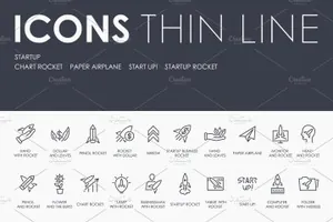 图穷联素材库 » 火箭启动图标素材 Startup thinline icons