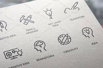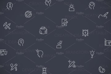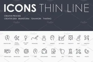 图穷联素材库 » 创作灵感图标素材 Creative process thinline icons