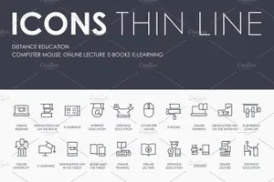 远程教育图标素材 Distance education thinline ico