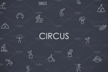 图穷联素材库 » 马戏团矢量图标制作Circus thinline icons