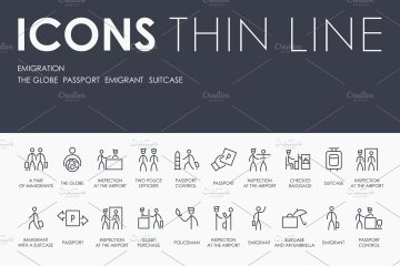 移民矢量图标素材 Emigration thinline icons