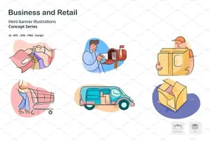 商业涂鸦线条图标素材 Business Doodle Line Icons