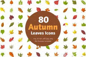图穷联素材库 » 秋季枫叶矢量图标素材 80 Autumn Leaves Icons