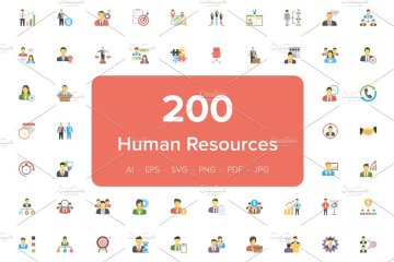 人力资源矢量图表大全 200 Human Resource Flat Icons