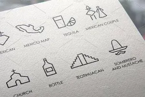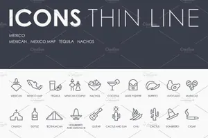 图穷联素材库 » 墨西哥元素图标素材 Mexico thinline icons